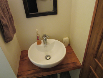 | こちらが洗面所です。全体的に落ち着いた雰囲気です。 | 美容院の雰囲気に合ったおしゃれな洗面台になりました。 |