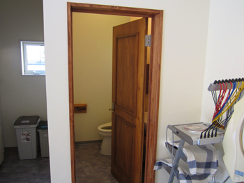 | 温もりのある店内で、ゆったり落ち着いて綺麗になることができます。 | トイレへのドアも木を使うことによって温かみのあるトイレとなっています。 |